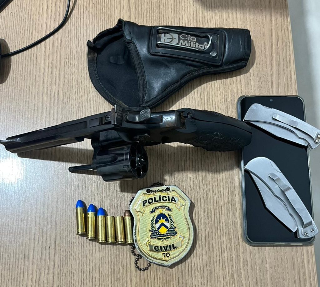 Diante dos fatos, a equipe da PC/TO passou a empreender diligências e a aproximadamente 22 km do parque de exposições de Dueré, interceptaram a camionete Ford, F4000, que era conduzida pelo suspeito W.R.B. Após realizar uma busca no interior do veículo, os policiais civis encontraram e apreenderam um revólver, calibre 38, com quatro munições intactas e duas já deflagradas.